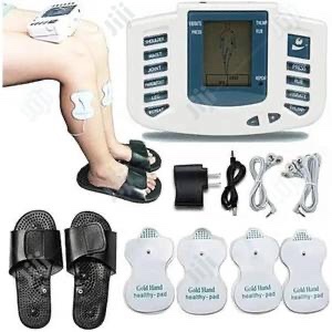 Dolazi sa dva komada masažnih elektroda, punjacem, žicom za elektrode i par papuca